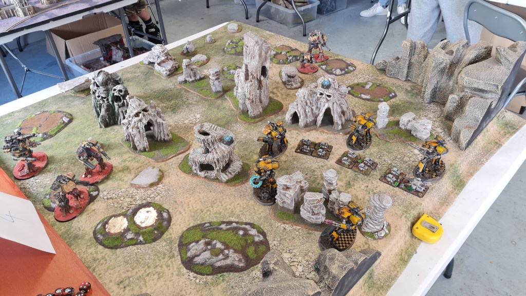 The final match was on a ruined Hive board – with an expanding warp conflagration at the centre. The mission was simple enough: occupy table quarters with larger scale units and/or kill the enemy.
