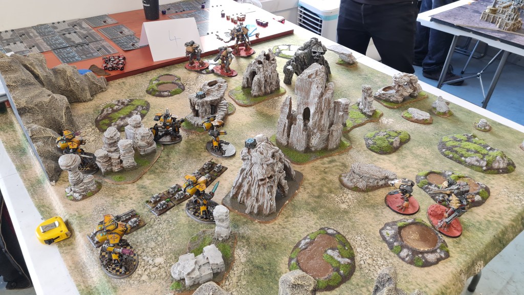 A further table was added after the first round, but I didn’t get to try that one – it was a series of take & hold objectives on a starport. Lots of nicely printed and painted GrimDarkTerrain which made me want to change my own printing plans for the next few months!