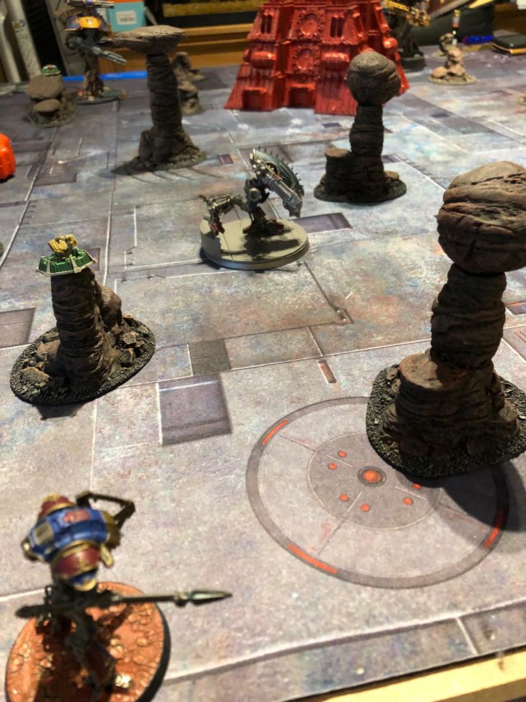 We were following the new Matched Play book and played a 2000pt a side match. This provides us with and a hand of Stategems – from which you may spend points from your Stratagem Pool as you choose during the game, a Strategem Pool of 6 points (7 for me as one on my Princeps’ traits grants one additional Strategem point)