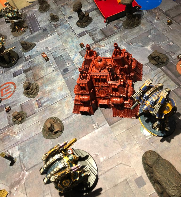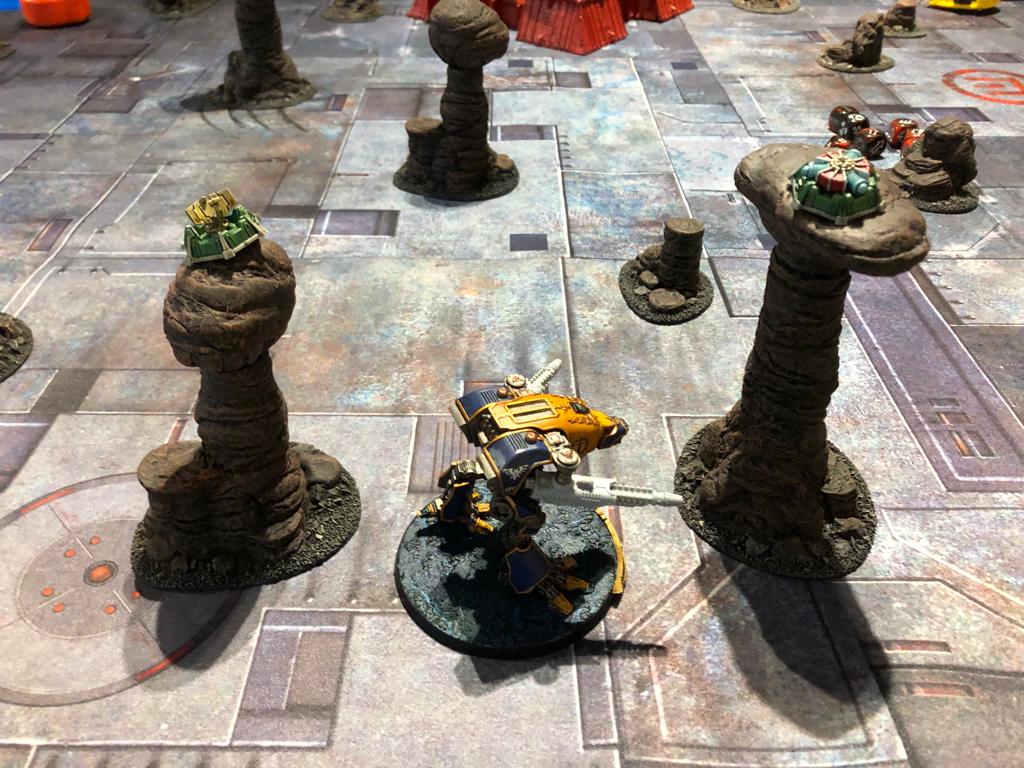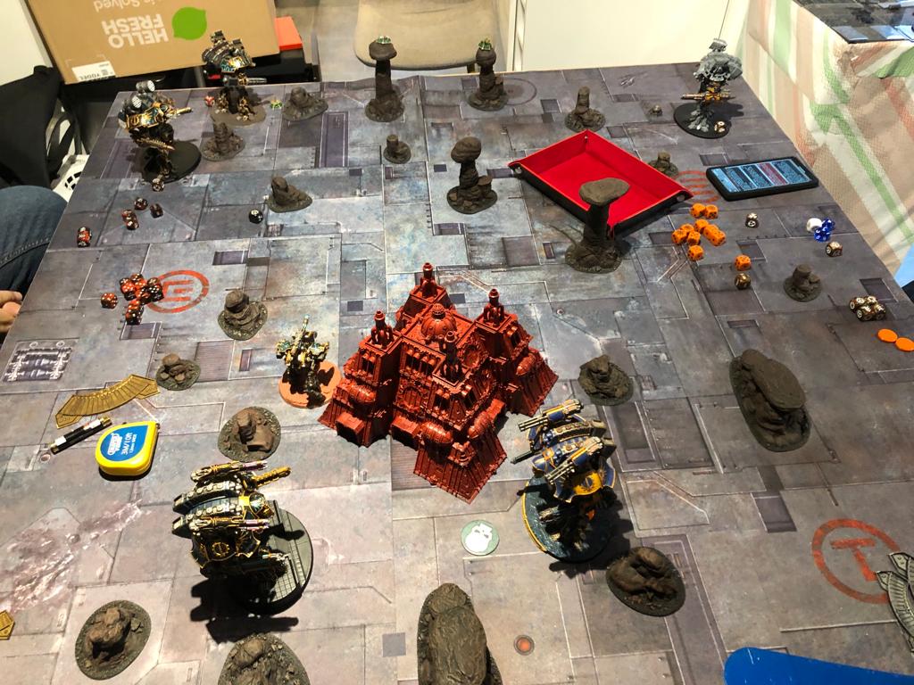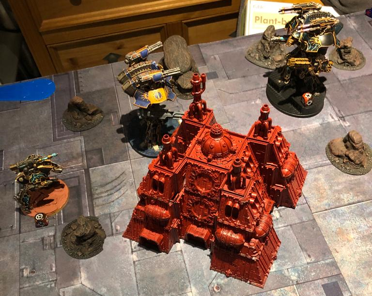 I ducked my Direwolf around to the side of the Forge Fane to give it some respite from the Dauntless’ guns and a chance to bleed some of the heat it’s reactor had managed to generate in exchange for it’s underwhelming shooting the previous turn.