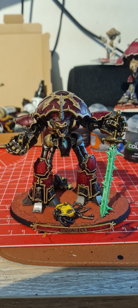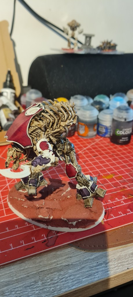 The Warlord and Reavers etc finally arrived yesterday and a frenetic building session has taken place to realise my demented vision of the centrepiece; Khar’Lakar Ire-Blood, The Enshrined.