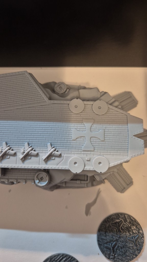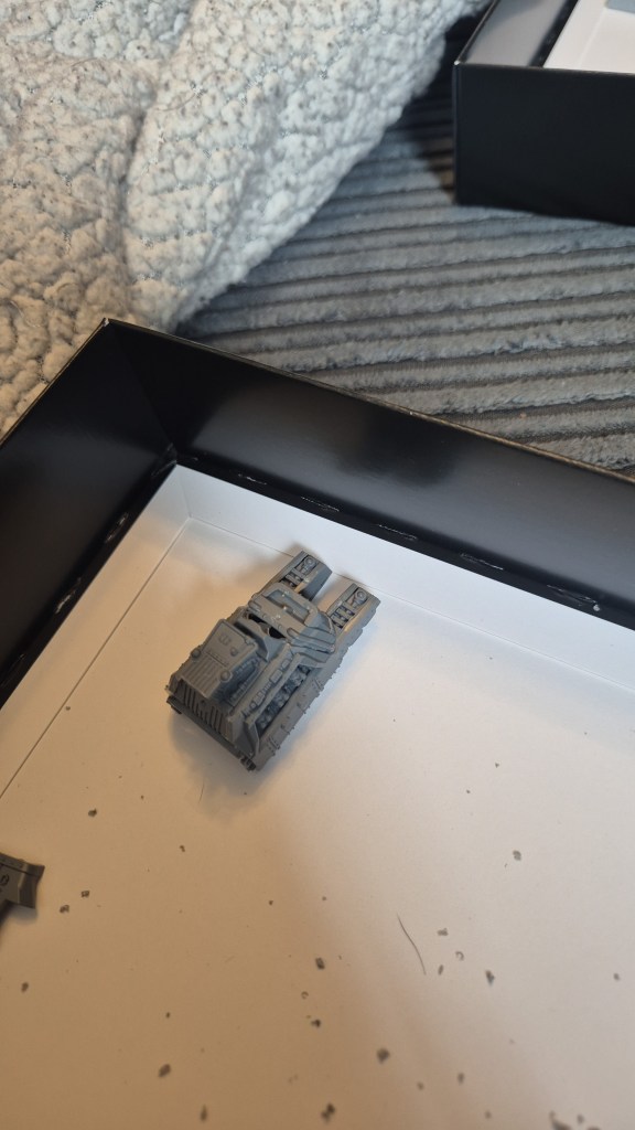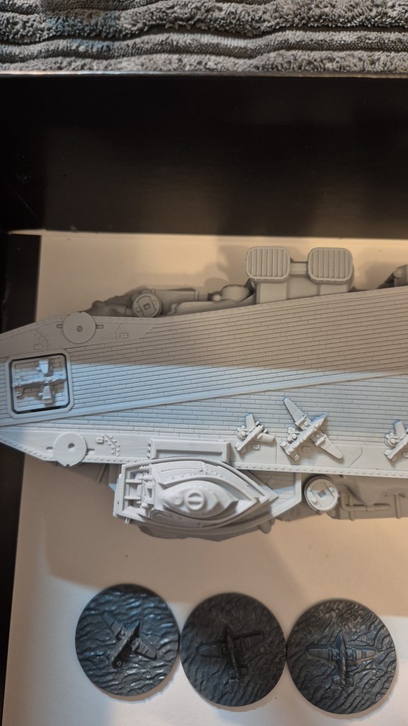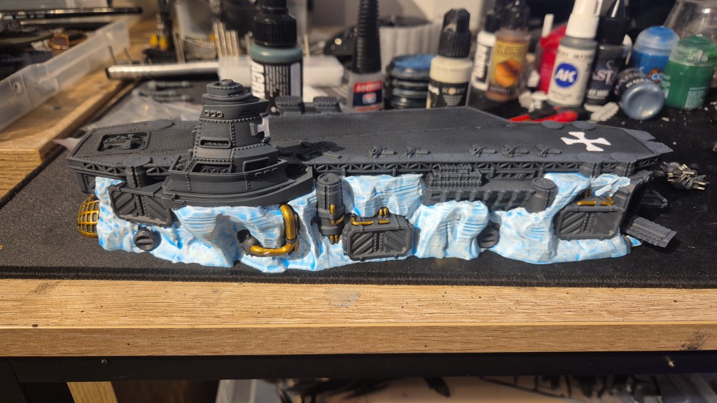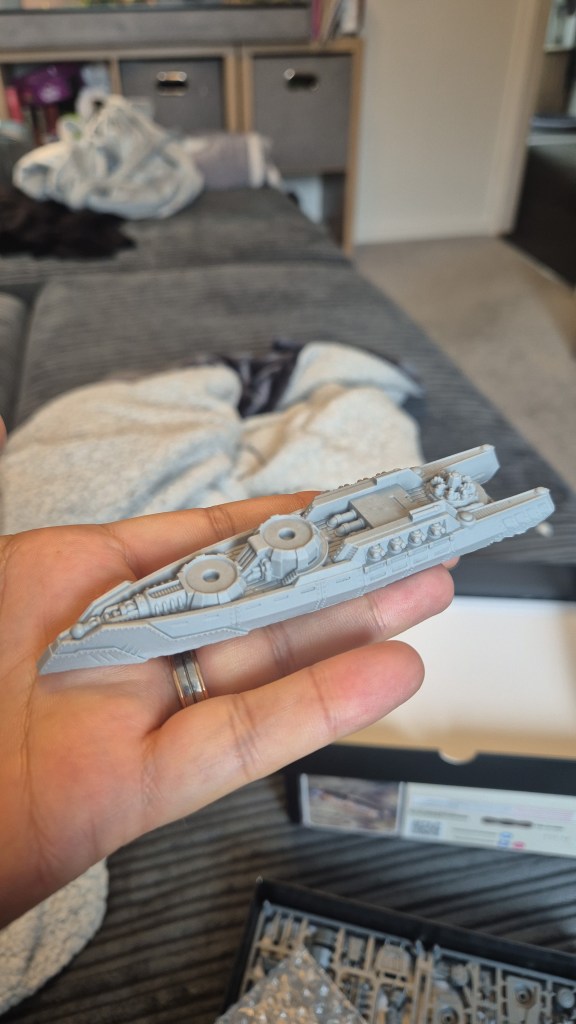 When the Ice Maiden box arrived I was immediately blown away by how large the ship is – it has to have a special rule (Very Large) to allow it to be deployed in the standard 8 inch deployment zones, it is THAT big! I was further impressed by how high quality the resin was – coming from a history of Games Workshop’s Forgeworld resin varying between decent and awful and TTC’s resin for Dropfleet which has been, at best, challenging for the kits I’ve had, I was astounded that it just… worked. High quality, easy to work with and so far not a single issue. I’m a convert.