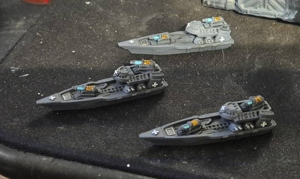 Learning to build a new system’s models is always a unique experience for those that enjoy building. Prussian Frigates and Destroyers are simple enough, the Cruisers are a little more challenging until you have one or two done and from then on they just seem to build themselves. Scandinavians, on the other hand, were a significantly tougher proposition – the Jotun Heavy Raiders particularly were entirely insane in the level of parts that were needed to make the smallest of parts… after building them, though… those are some sexy boats!
