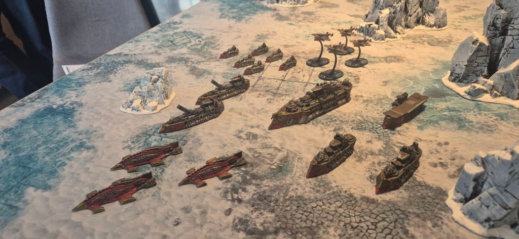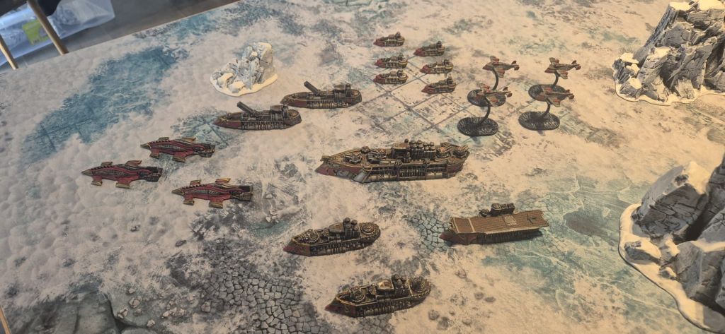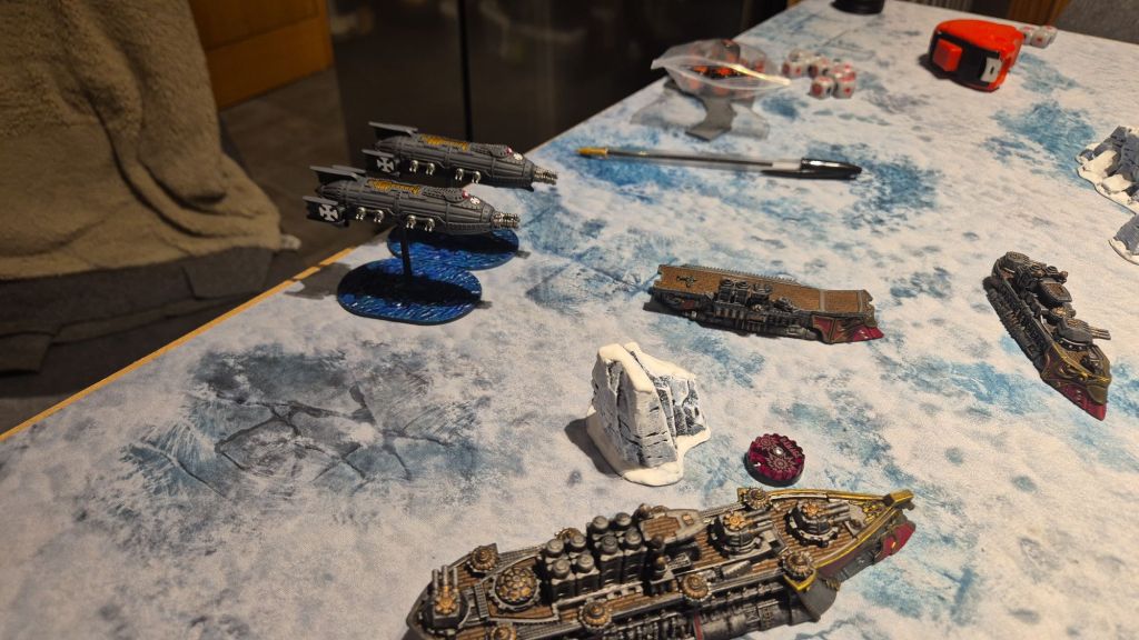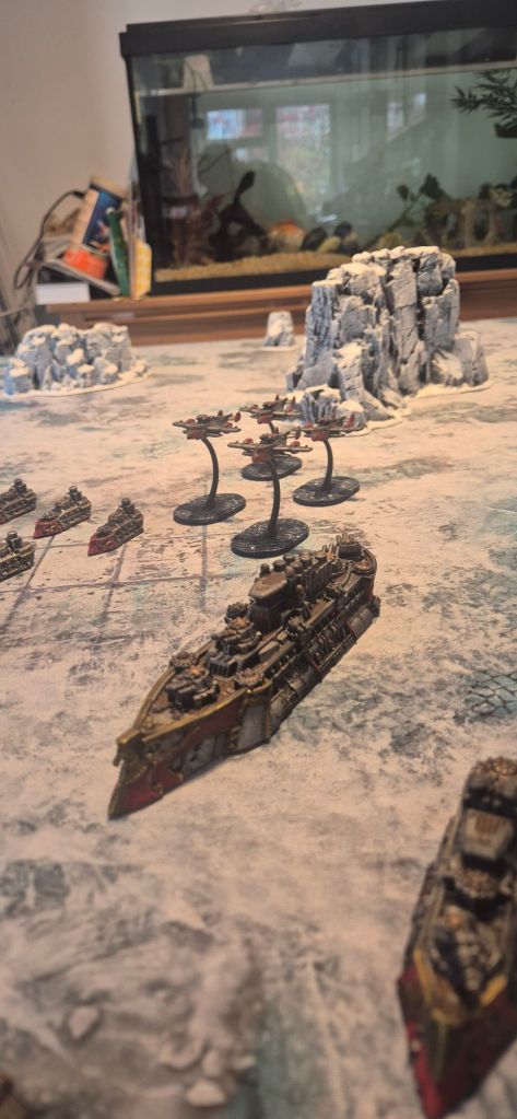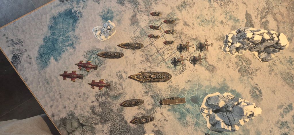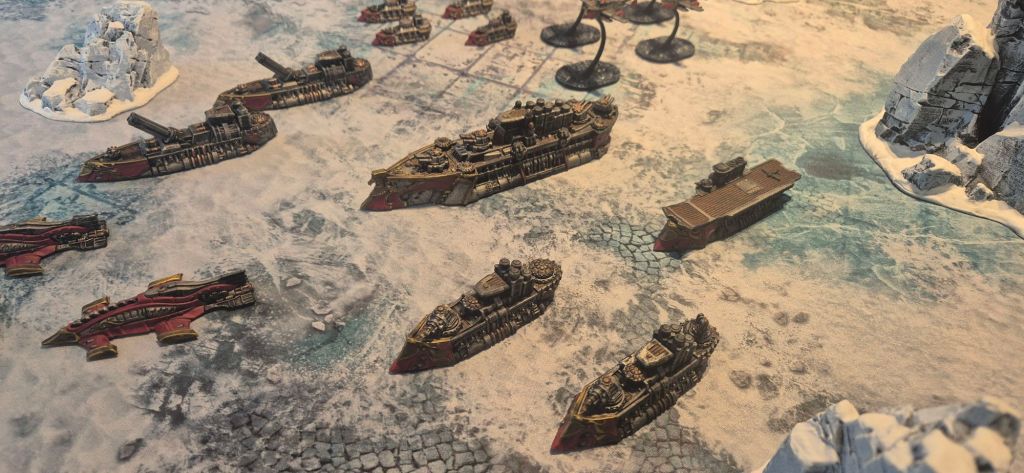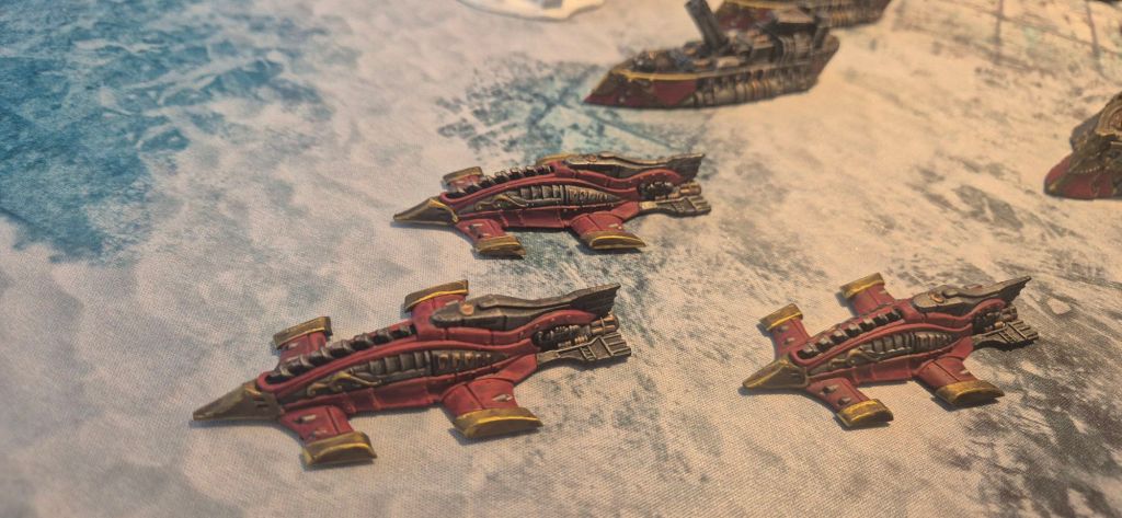So where do I take my fleet from here? Well I need a few more games to really solidify the rules in my head and then to start learning which units I like and which I don’t (I have avoided using the term “best” here. I’m a fan of running things at times that may not be the most effective, but are the most fun). At the time of writing, I have at least one more game booked in, but think it will take a couple more to get my head around the game fully. (Ed Note: a brutal brawl of a 1500pt game as we upped the ante and the first time the Ice Maiden would see deployment properly)