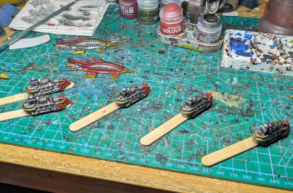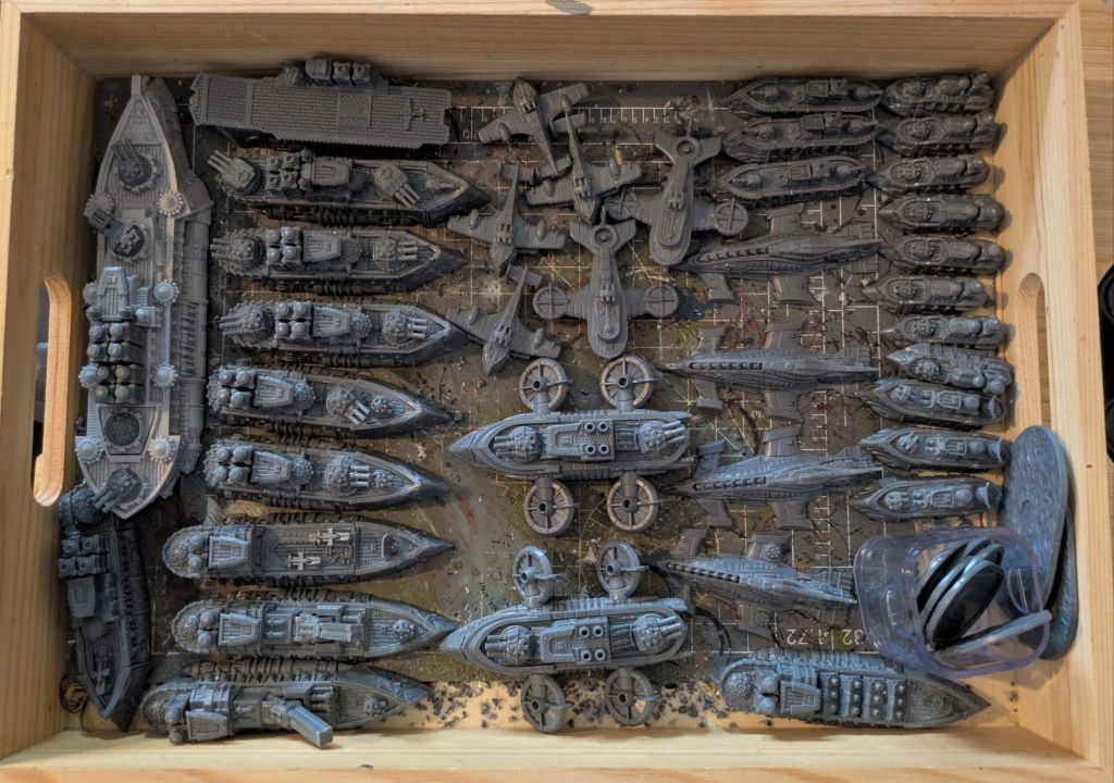 I set myself the target of having a fully painted fleet for our next game the following week, with potentially having 2000 points table ready by the time of an arranged Saturday game just over a week after that.